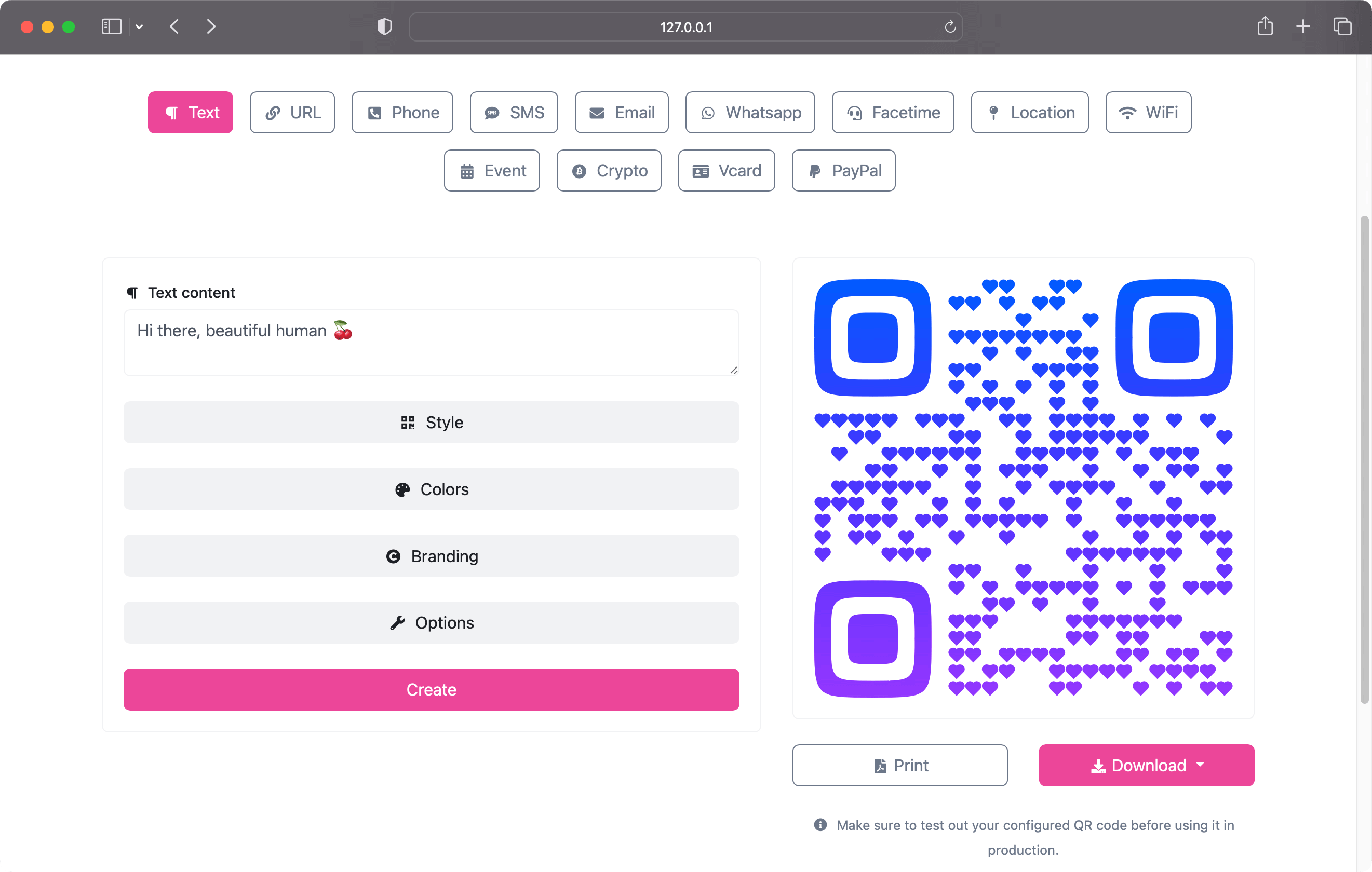 We do not store any data of your created QR codes, except the ones that you save in your account willingly.